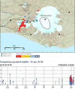 IMO quake map and diagram re. 2010 eruptions of Eyjafjallajökull