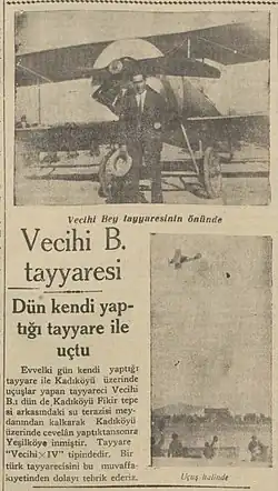- ^ a b İzzet Taşkıran (16 July 2018). "Havacılıkta ilklerin adamı: Vecihi Hürkuş". Anadolu Agency. Archived from the original on 28 January 2021. Retrieved 22 July 2022.