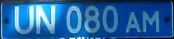 - UN offices carry white-on-blue plates in the format of UN NNN AM.