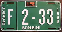 Current plates are North American standard 6 × 12 inches (152 × 300 mm).[1]