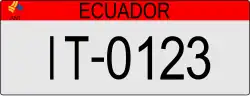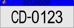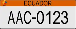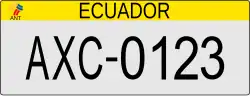 The plates have a XX-0123 format with ECUADOR in black capital letters on top of the plates. The first two letters denote different types of plates based on the user of the vehicle.