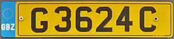 ![]() Gibraltarian regular legal standard number plate. | |