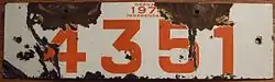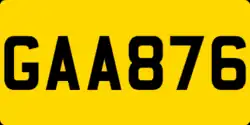 The vehicle registration plates of Grenada[1] use the North American standard 6 in × 12 in (152 mm × 300 mm)[2] but use the typeface[3] used on British plates.[4] Rear plates have a yellow background and front ones white.[5]