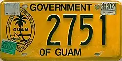 1948 | Embossed black on golden yellow with border line; "GUAM" at left and "1948" at right | 1234 | 1 to approximately 4200 | First embossed plate. |