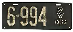 | First issued | January 1, 1922 (city and county plates from 1906 to December 31, 1921) |