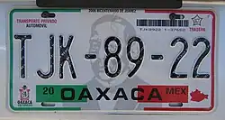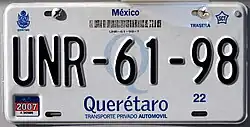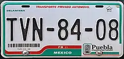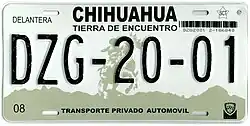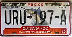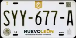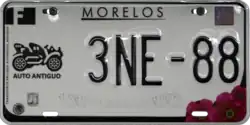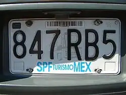 Vehicle registration plates of Mexico are issued with unique visual designs by each state, but with a single national numbering system, such that serials are not duplicated in multiple states.[1] Most states change designs approximately every three years, with each state having its own plate replacement cycle. Every year, owners of Mexican-registered vehicles pay the tenencia or revalidación de placas (car plates renewal tax). A set of Mexican plates includes one pair of plates, a windshield sticker, and in some states a plate sticker. The international code for Mexico is "MEX".