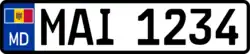 License plates in Moldova were introduced on November 30, 1992. Currently issued plates consist of six black characters on a white background: three letters and three numbers. On the left part of the plates there is a modified, wider than usual blue euroband having the Moldovan flag instead of the EU symbol and the international country code MD underneath it. The plates are 520 mm wide and 112 mm high, made of metal with embossed characters using the FE-Schrift font.[1]