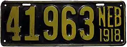 1918 | Yellow on black; "NEB 1918 at right" | none | 123456 | 1 to approximately 171000 | |