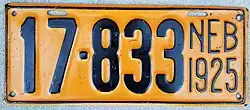 1925 | Black on orange; "NEB 1925" at right | none | 1-12345 10-1234 |