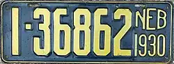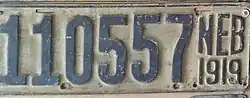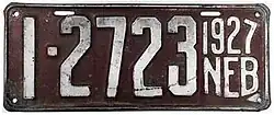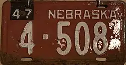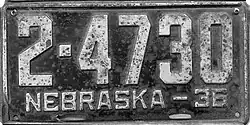 - ^ "Old Nebraska License Plates". LeatherLicensePlates.com. Retrieved May 25, 2017.