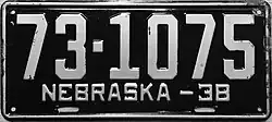 | 1938 | Silver on black; "NEBRASKA – 38" at bottom | none | 1-12345 10-1234 |