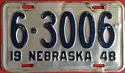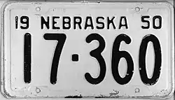 - ^ a b c Tanner, Eric N. "Nebraska Passenger License Plates". allaboutlicenseplates.com. Retrieved November 11, 2020.
