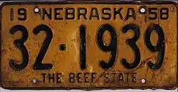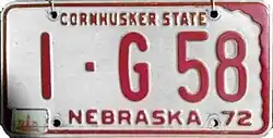 - ^ a b "Nebraska License Plates". www.licenseplates.cc. Retrieved July 13, 2024.