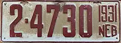 1931 | Red on gray; "1931 NEB" at right | none | 1-12345 10-1234 |