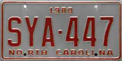 - ^ a b c d e Tanner, Eric N. "North Carolina Passenger License Plates". allaboutlicenseplates.com. Retrieved November 19, 2020.