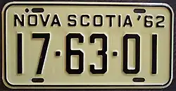 - ^ a b c Tanner, Eric N. "Nova Scotia Passenger License Plates". allaboutlicenseplates.com. Retrieved November 17, 2020.