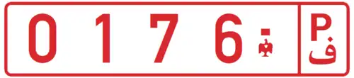 Private vehicles had white plates with green numbers, the numbers have seven digits, the first shows the district (governorate) of the registration:
