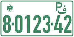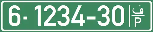 Public transport vehicles such as taxis, shared taxis and buses have green plates with white numbers. Taxi plates always end in "30".