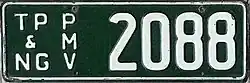 | Registration plate used on motorcycles belonging to the Administration of the Territory of Papua New Guinea. | ![]() |