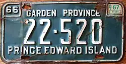 - ^ Tanner, Eric N. "Prince Edward Island Passenger License Plates". allaboutlicenseplates.com. Retrieved December 17, 2020.