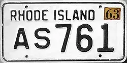 1961–66 | Embossed black serial on white plate with border line; "RHODE ISLAND" at top, offset to left | none | AB123 | AA1 to WW999; AI1 to approximately KX500 |
