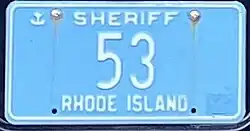 Sheriff | ####–present | Blue Background with "Sheriff" and anchor on top with Rhode Island on bottom | 12 |