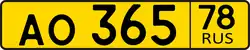 - ^ This type is not to be confused with the now defunct similar-looking yellow license plates having the format LL NNN L, which were issued prior to 2002 to cars registered to foreign companies operating in Russia; the latter type has now been withdrawn.