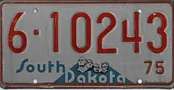 Coded by county of issuance (1 or 10) | First screened graphic license plate in the United States. Awarded "Plate of the Year" for best new license plate of 1974 by the Automobile License Plate Collectors Association, the first time South Dakota was so honored. |