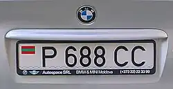 There is an ongoing debate between the Moldovan authorities and the government of Transnistria on a design to be used on Transnistrian plates that is acceptable for Moldova also. Moldovan authorities have been reported to confiscate Transnistrian plates as the registration of vehicles in the Transnistrian region is illegal for Moldovans.[2] In 2018, Transnistria began issuing a neutral design with MD sticker license plate that works in the European Union.[3][4]