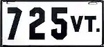 1913 | Black serial on white porcelain plate with border line; vertical "VT" and "1913" at left and right respectively | none | 1234 | 1 to approximately 6000 | |