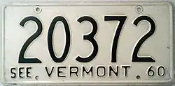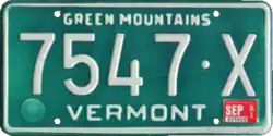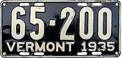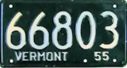 - ^ a b c d Tanner, Eric N. "Vermont Passenger License Plates". allaboutlicenseplates.com. Retrieved November 11, 2020.