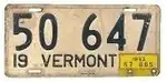 1942–43 | Embossed dark blue serial on white plate; "19 VERMONT 42" at bottom | none | 12 345 | 1 to approximately 88 000 | Revalidated for 1943 with yellow tabs, due to metal conservation for World War II. |