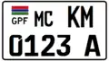 27x20 cm Black on yellow Gambian Flag as well as the text GPF on the top left corner of the license plate | |||