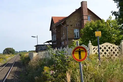 Vehlefanz station is a railway station in the Vehlefanz district of the municipality of Oberkrämer, located in the Oberhavel district in Brandenburg, Germany.