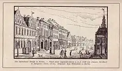 Veitel Ephraim was the fifth child of Altona-born jeweller and elder of the Jewish Community Nathan Veitel Ephraim (1658–1748), who moved from Hamburg to Berlin. His mother came from Vienna. The Ephraim family lived in Spandauer Straße 30. Around 1744 or 1745, Ephraim became court jeweller of Friedrich II. They had known each other since 1738, when they met at Schloss Rheinsberg. Already as Crown Prince Friedrich was in debt to Ephraim.[6] In 1748, Ephraim leased a factory in Potsdam for lace and had orphans taught in the production of it. Two years later, he was appointed by the King as the senior elder of the Berlin Jewry. In 1752 or 1754, Ephraim delivered silver to Johann Philipp Graumann, director of the Prussian mints.[7][8][9]