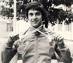 ![]() Venanzio Ortis with the two medal won at the 1978 European Championships | |||||||||||||||||||||||||||