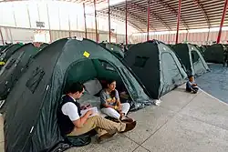 The 2015 Colombia–Venezuela migrant crisis refers to a diplomatic and humanitarian crisis that occurred in mid-2015 following the shooting of three Venezuelan soldiers on the Venezuela–Colombia border that left them injured and President of Venezuela Nicolás Maduro's response of deporting thousands of Colombians.[3][4] Maduro's response of declaring a state of emergency, closing the border to Colombia indefinitely and deporting thousands of Colombians that lived near the border,[5][6] struck fear in tens of thousands of other Colombians living in Venezuela resulting in their emigration from the country and a crisis involving separated families and Colombians seeking food and shelter.[6][7] The actions of President Maduro were questioned by human rights groups, the United Nations, the European Union and the United States.[8]