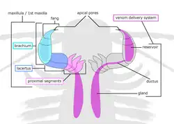 Venom glands are a wide variety of salivary glands in insects and reptiles modified to produce venom and store it without harm to the organism itself.[1][2]