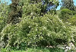 Marked vegetation changes occur within the Wilderness, attributable to dramatic climatic and topographic variations coupled with an extensive fire history. Much of the Ventana Wilderness is covered by dense communities of chaparral, a group of fire-prone plant species, consisting largely of chamise and various species of manzanita and ceanothus. Other plant communities found in area include oak woodland (coast live oak, valley oak, etc.) and pine woodlands (Coulter pine and Knobcone pine). Poison oak is found throughout the area. Deep narrow canyons cut by the fast moving Big Sur and Little Sur rivers support stands of coastal redwood (some old-growth forest), big leaf maple, and sycamore. Small scattered stands of the rare, endemic bristlecone fir may be found on rocky slopes and canyon bottoms. Mountain lion, bobcat, bear, deer, fox and coyotes range the wilderness, as does the California condor, reintroduced to the region by the Ventana Wildlife Society.[15]