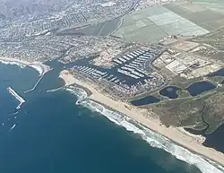 Ventura, officially named San Buenaventura (Spanish for "Saint Bonaventure"),[11] is a city in and the county seat of Ventura County, California, United States. It is a coastal city located northwest of Los Angeles. The population was 110,763 at the 2020 census.[12] Ventura is a popular tourist destination, owing to its historic landmarks, beaches, and resorts.