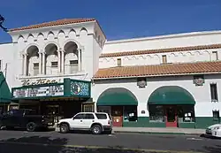 The large Ventura Oil Field was first drilled in 1919 and at its peak produced 90,000 barrels per day (14,000 m3/d).[31][32] The development of the oil fields in the 1920s, along with the building of better roads to Los Angeles and the affordability of automobiles, enabled a major real estate boom. Symphony concerts and Little League teams were sponsored by the oil companies.[33] Contemporary downtown Ventura is defined by extant buildings from this period.[34][35] Landmarks built during the oil boom include Ventura Theatre (1928), the First Baptist Church of Ventura (1926), the Ventura Hotel (1926), and the Mission Theatre (1928).[36][34]