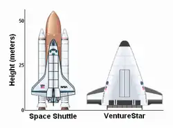 VentureStar's engineering and design would have offered numerous advantages over the Space Shuttle, notably considerable savings in time and materials, as well as increased safety.[4] VentureStar was expected to launch satellites into orbit at $2,000 USD per kilogram, 1/10 of the Space Shuttle's cost of $20,000 USD per kilogram.