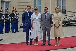 On 23 July 2024, traveled with her husband to France, where they both held a meeting with Brigitte Macron, wife of the president of France, and later attend the Opening Ceremony of the 2024 Summer Olympics in Paris.[80][81][82] In February 2025, she traveled as a special guest to the Zayed Prize in Abu Dhabi, United Arab Emirates.[83][84] On 26 April 2025, she represented the government during the funeral for Pope Francis.[85][86]
