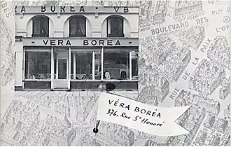 Prestigious fashion magazines featured Vera Borea's creations alongside Hermès, Lanvin, Chanel and Patou.[12] Her designs were copied with those of Vionnet, Schiaparelli,[13] Lanvin and Patou.[14]