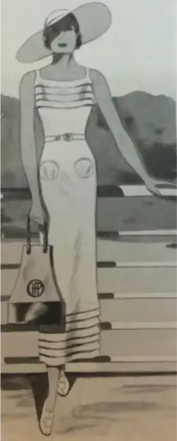Countess de Regoli, a passionate sportswoman[6] born and raised in Italian Dolomites, was frustrated by a lack of clothing that was chic yet comfortable and began to design sportswear, négligées and swimming suits featuring special knitting stitch invented by her grandmother[7]