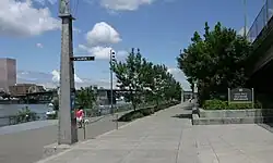 The Eastbank Esplanade (officially Vera Katz Eastbank Esplanade) is a pedestrian and bicycle path along the east shore of the Willamette River in Portland, Oregon, United States.[1] Running through the Kerns, Buckman, and Hosford-Abernethy neighborhoods, it was conceived as an urban renewal project to rebuild the Interstate 5 bicycle bypass washed out by the Willamette Valley Flood of 1996. It was renamed for former Portland mayor Vera Katz in November 2004[1] and features a statue of her near the Hawthorne Bridge.