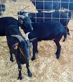 The Verata usually varies in colour from jet-black to mahogany; a chestnut coat with dark belly and limbs also occurs.[5]: 246 Horns are present in both sexxes; in the male they are close together at the base, rising vertically and then spiralling outwards. Billies are always beards, nannies often so.[5]: 246