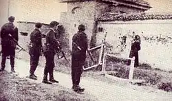 The partisan war in the Vercelli area was characterized by the presence of multiple partisan units in the area, which engaged not only in classic local guerrilla actions, but also in mountain and lowland open field combat operations, with some local successes alternating with defeats.[20] In addition to this, the partisan forces attempted to liberate some areas of the province, coming to constitute real enclaves within the territory controlled by the republican fascists and the Germans: this is the case, for example, of the Republic of Valsesia and Valsessera, which were free between June and July 1944 and then - the latter - from March 1945. The last reprisal perpetrated by the fascists in the province took place on March 9, 1945 in Salussola with the shooting of twenty or twenty-one partisans, in response to a partisan ambush conducted on March 6 in the same locality and resulting in the death of four fascists.[21][22]