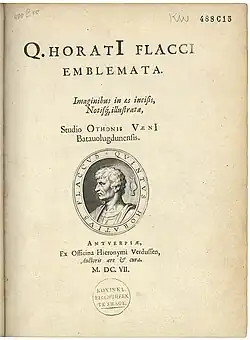 - 1607: Otto van Veen, Emblemata Horatiana (2 editions: 1607 and 1612; republished in Spanish by next generations of the Verdussens in 1672, 1682, 1701 and 1733)