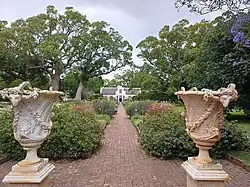 Vergelegen's Cape Dutch house, gardens and winery are open to visitors. Interesting features of any visit include a trip up the mountain to the winery plant, and a walk under the vast Camphor laurels (Cinnamomum camphora) planted by Willem van der Stel in about 1705 which have been declared a protected provincial heritage site.[2] The winery is uniquely shaped in an octagon form that is mirrored on the vineyard's labels.